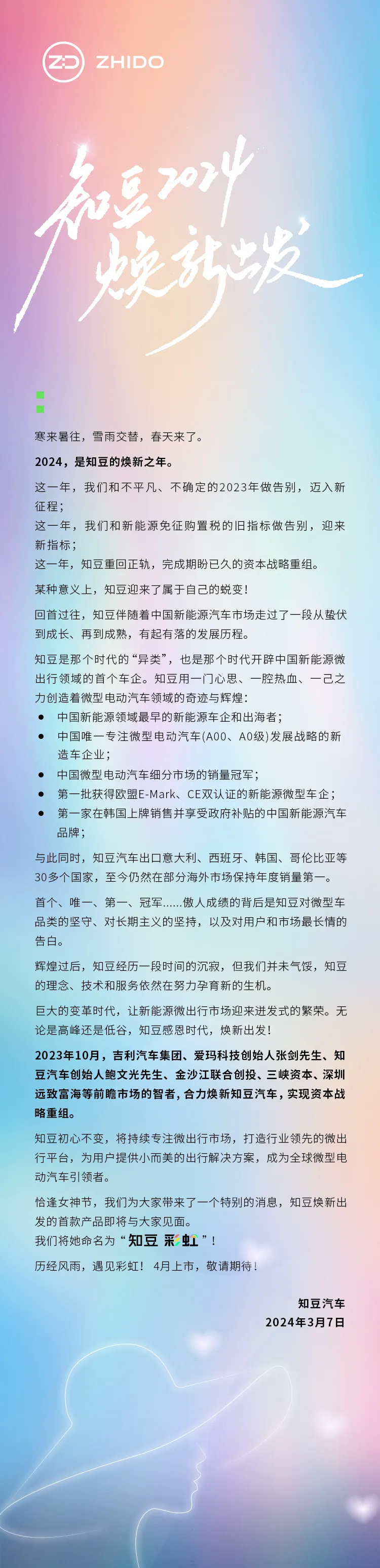 你相信起死回生吗?3月7日,曾经的微型车销量冠军知豆汽车,官宣重启,首款车型知豆彩虹将于今年四月上市。